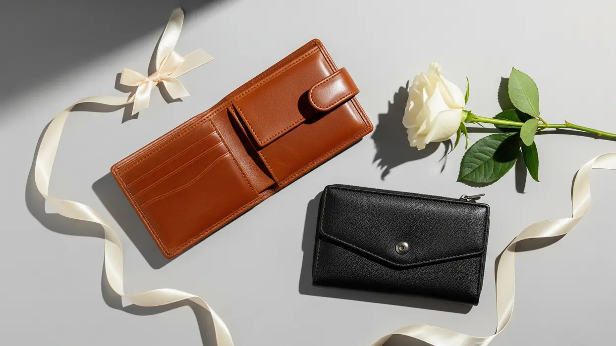 📸 (Image Suggestion: A couple exchanging leather wallets as gifts – one classic men’s wallet, one elegant women’s wallet.)