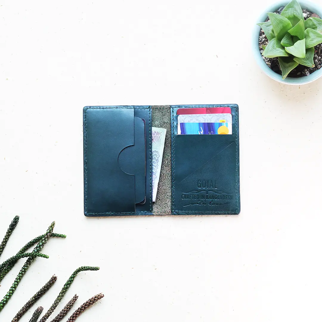 The green shade is unique and eye-catching. Not a common colour for wallets which makes it stand out. Compact and well-designed for cards.