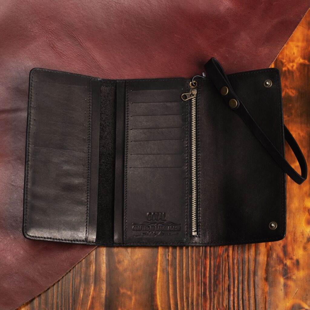 Introducing the Roadster Vault, a long trifold wallet crafted for those who demand security, space, and style. Designed with bikers and travelers in mind, this wallet keeps your essentials protected while adding a bold statement to your everyday carry.